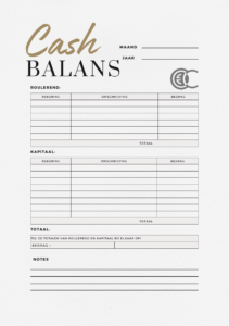 ✔ Cash balans & Sparen – Maak onderscheid tussen je directe cashflow en je spaargeld, zodat je bewust financiële keuzes kunt maken.